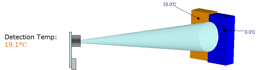 For example, if half of the detection area is 35.0°C and the other half is 0.0°C, the radiant energy is proportional to the fourth power of the temperature, so the detection temperature will be 19.1°C as shown in the formula below.