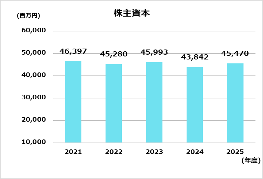 | 株主資本 | 46,397 | 45,280 | 45,993 | 43,842 | 45,470 |