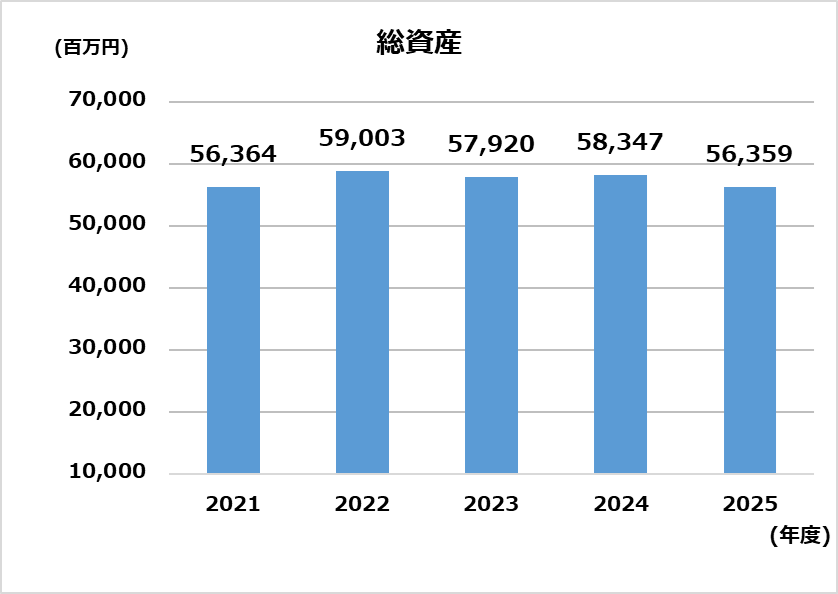 | 資産合計 | 56,364 | 59,003 | 57,920 | 58,347 | 56,359 |